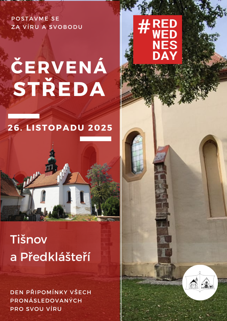 Červená středa – 26. listopadu 2025-kostelík Na Stráňově v Předklášteří a kostel sv. Václava v Tišnově